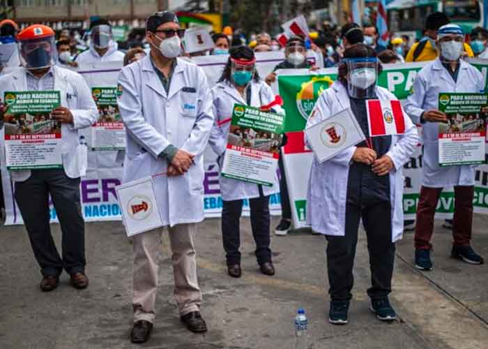 "No se paga el bono covid. No se pagan las horas complementarias, no nos dan equipo de protección, no nos hacen las pruebas rápidas", dijo a la AFP Godofredo Talavera, presidente de la Federación Médica Peruana, que vela por los derechos laborales de los galenos.