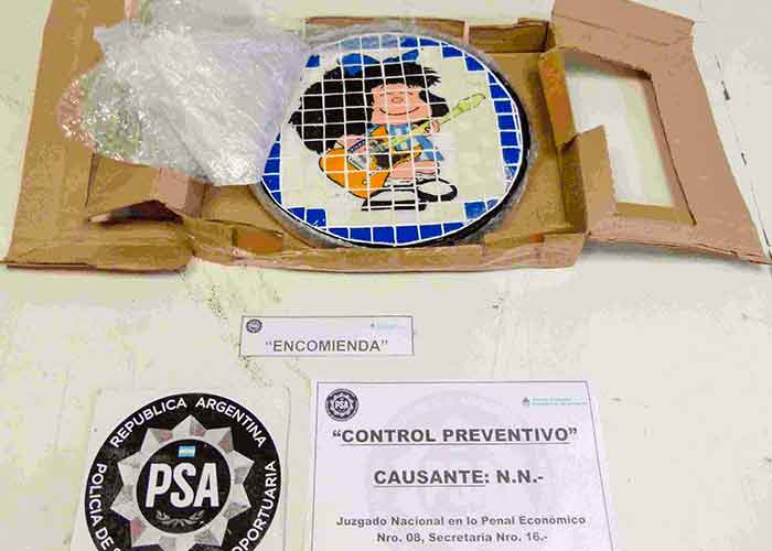 En ese sentido, la investigación arrancó el pasado 12 de junio, cuando oficiales de la PSA interceptaron una encomienda cuyo destino final era Holanda, "conteniendo una artesanía de forma circular con la imagen del personaje de caricatura Mafalda".