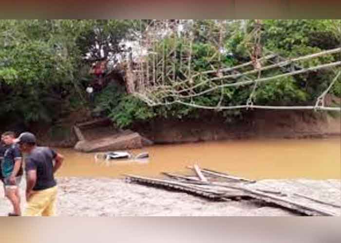Consejo Municipal de Gestión del Riesgo de Necoclí reporta que en la vereda La Comarca, un puente colgante colapsó mientras era cruzado por un vehículo. Este accidente deja como saldo cinco personas fallecidas. Los hechos son materia de investigación. pic.twitter.com/yXT3iyLb8z