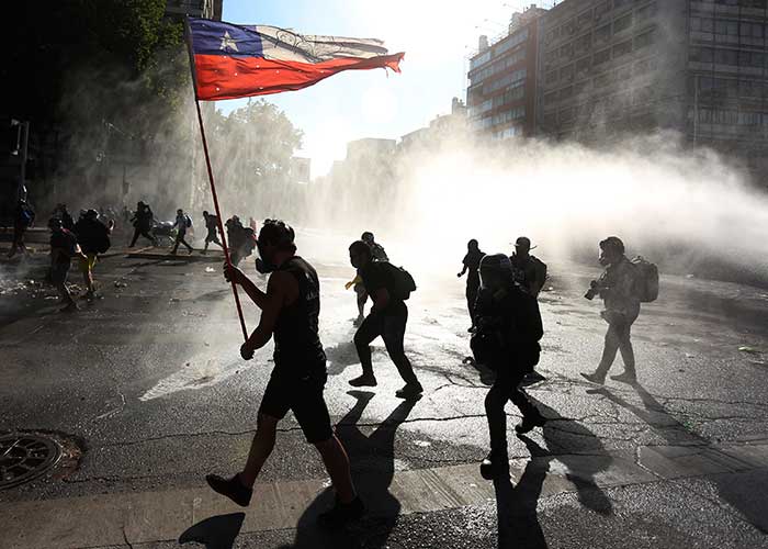 La zona ya se encuentra militarizada, con camiones hidrantes y un centenar de efectivos de Carabineros -la Policía de Chile-, quienes intentan despejar la zona.