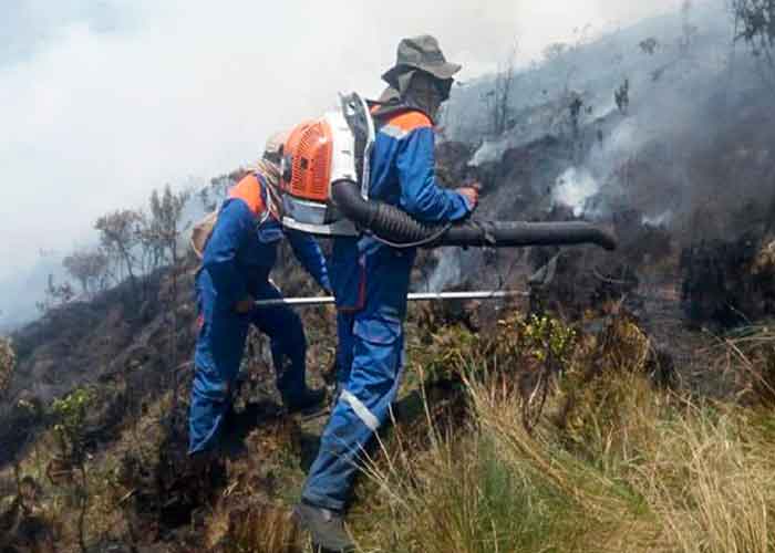 Cumple cuatro días el incendio forestal en los páramos del Parque Nacional Cayambe-Coca.