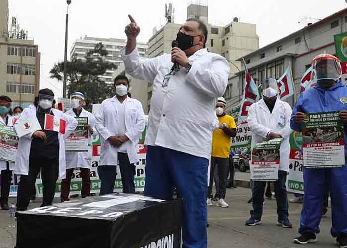La huelga de médicos y otros profesionales de la salud comenzada el miércoles último en Perú y anunciada "por tiempo indefinido", aunque sin afectar la atención a pacientes de Covid-19 ni los servicios más importantes, se mantiene en esta jornada con nuevas acciones de protesta.