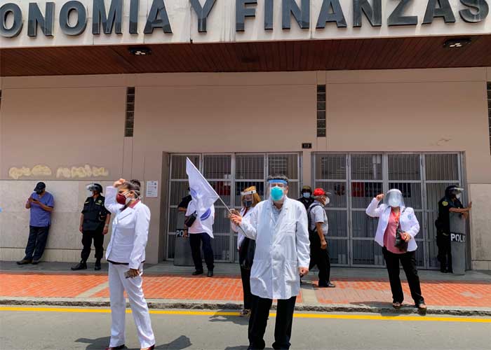Este lunes 18 de enero, en el frontis del Ministerio de salud se inició con el sexto día de HUELGA NACIONAL DE TRABAJADORES DEL SECTOR SALUD, con la paraliturgia en donde se recuerda a los fallecidos por la covid-19. pic.twitter.com/2MSaGcbsyV— Federación Médica Peruana Oficial (@FMedicaPeruana) January 18, 2021