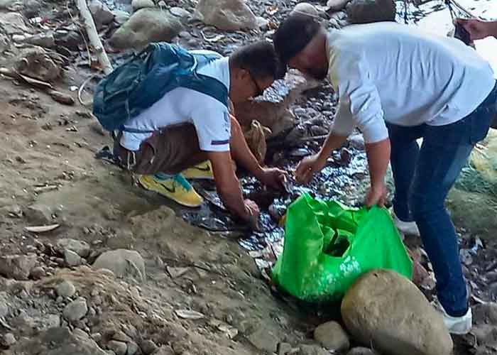Los hondureños con ayuda de un mexicano lograron sacar cerca de 25 y 30 peces conocidos como mojarras, los que fueron repartidos.