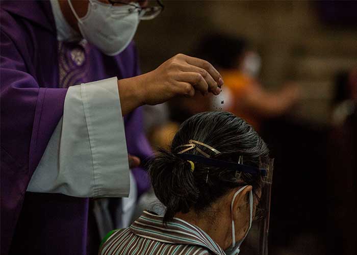 No hubo marcas en las frentes en esta ocasión, sino una pizca de ceniza que lanzaron los religiosos a los feligreses en las iglesias, con ceremonias que guardaron los protocolos sanitarios, como la reducción de los aforos, el uso estricto de la mascarilla y el alcohol en gel.