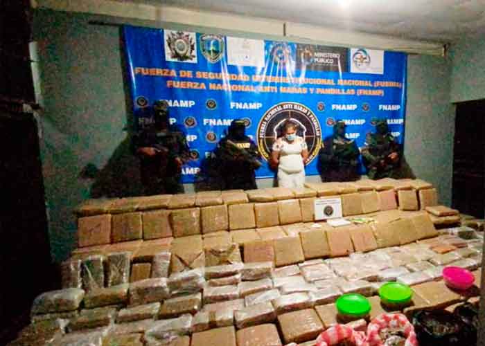 Durante la incautación realizada en el marco de la Operación Morazán II en una lujosa residencial de la zona norte, le decomisaron 1,954 paquetes de marihuana -de aproximadamente un kilo cada uno- cuyo valor ronda entre los 7 a 10 millones de lempiras.