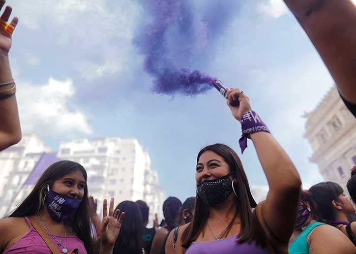 Mujeres se movilizan para conmemorar el 8M en Argentina