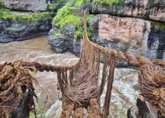 Lima, Perú | AFP | El puente colgante Q'eswachaka, que data del imperio inca en Perú y cuyo ritual de conservación es Patrimonio Cultural Inmaterial de la Humanidad, colapsó ante el deterioro de las sogas que no pudieron ser renovadas a causa de la pandemia, informó este miércoles la autoridad cultural de Cusco.
