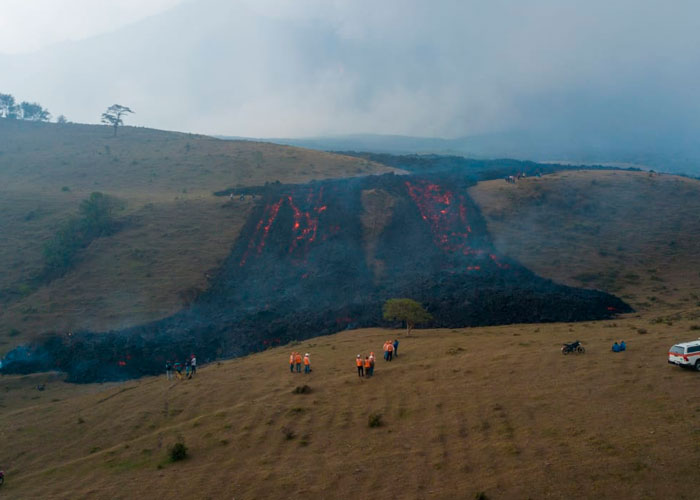"No podemos determinar hasta dónde será el avance de los ríos de lava. En algunos lados la altura de la lava es mayor de 40 metros. En El Patrocinio y El Rodeo podrían ser afectados los pobladores próximamente, pero el flujo también se podría dirigir hacia unas quebradas hechas hace cientos de años por la propia actividad volcánica", subrayó.
