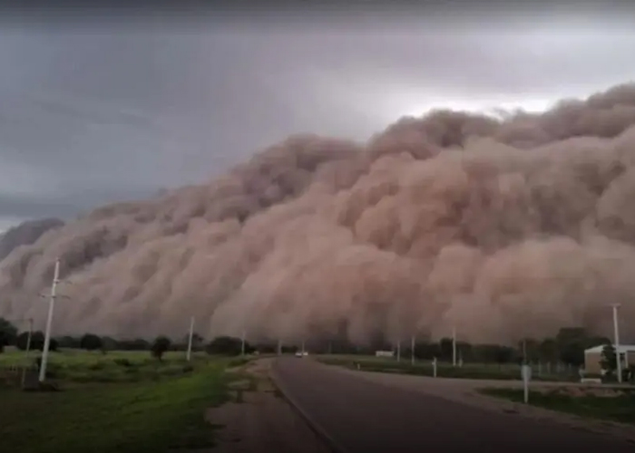 🇦🇷 Tormenta de polvo en la frontera entre Santiago del Estero y Chaco. Un fenómeno ya recurrente en los territorios que sufren desmontes en Sudamérica.
