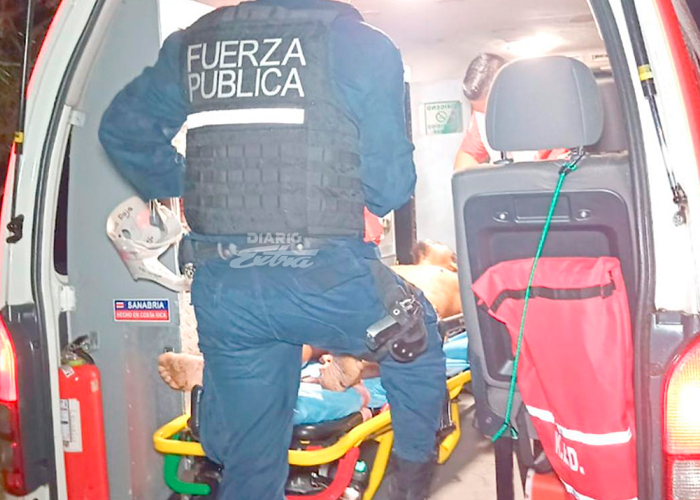 Hasta el lugar se envió una unidad de la Cruz Roja de Costa Rica cuyos socorristas abordaron al herido y, tras la valoración inicial, encontraron a simple vista 4 plomazos, dos en el abdomen y otros dos en el tórax.