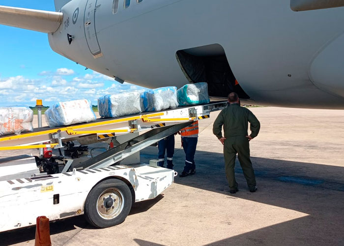 También se anunció que el avión de la Fuerza Aérea Argentina arribó la tarde del miércoles al Aeropuerto Internacional de la ciudad boliviana de Santa Cruz; con un cargamento que trasladó pastillas potabilizadoras de agua y 200 mantas, entre otra ayuda humanitaria.