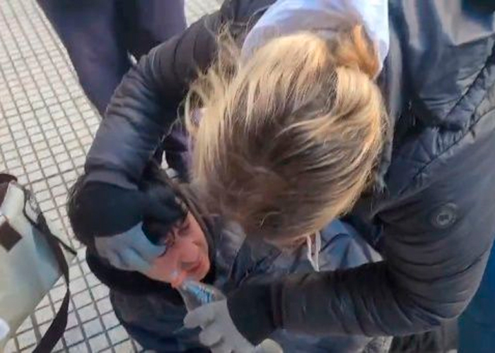 Mientras tomaba imágenes de sindicalistas en la capital argentina, un efectivo policial roció directamente a los ojos, a corta distancia y con gas pimienta, al camarógrafo Cristian Ibarra y le ocasionó considerables afectaciones.