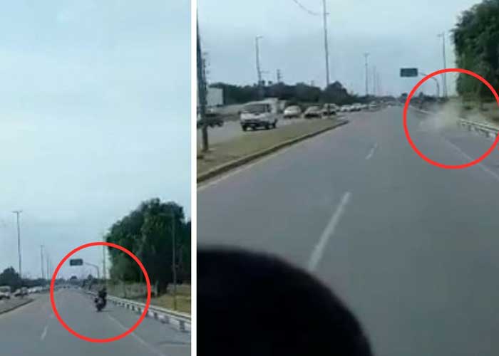 Así mismo, el trágico momento quedó registrado en video por otro conductor a plena luz del día. En el clip se muestra el fuerte choque que sufrió el uniformado de Argentina tras recibir el tremendo impacto contra el pavimento.