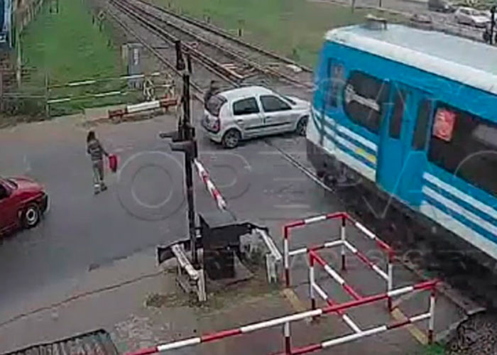 La colisión ocurrió hoy pasadas las 7:20 en el paso a nivel Los Patitos; cuando una fila de autos comenzó a cruzar con la barrera baja. Ante la situación; una banderillera se acercó al cruce y se paró de espaldas a los vehículos. Según informaron; la trabajadora de Trenes Argentinos no vio cuando el Renault Clio color gris pasó detrás de otros dos automóviles, como se ve en el video.