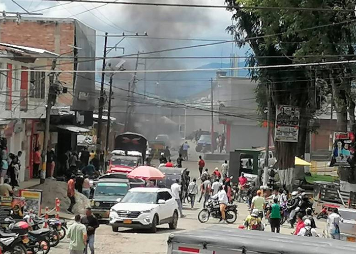 Una fuerte explosión acaba de escucharse en Morales, Cauca. Las versiones iniciales coinciden en que al parecer, se trató de una moto adecuada con explosivos. La detonación se produjo junto a un puesto de la policía local. El comercio cerró sus puertas. Habría heridos. pic.twitter.com/2q9SN70Kjz