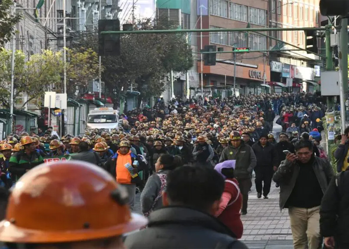 En la mañana de este miércoles, representantes de las cooperativas mineras marcharon desde la ciudad de El Alto hacia la sede del Ejecutivo, en protesta por la escasez de dólares, combustibles y explosivos; además del incremento de precios en la canasta familiar.
