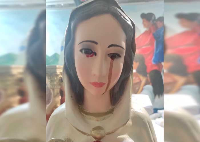 El insólito hecho se presentó en la capilla Ermitas del Divino Niño Jesús el Huerfanito de Bucaramanga, y el padre Édgar Silva, aseguró que la imagen que se difundió por redes sociales de la estatua de la Virgen Rosa Mística de Italia llorando lágrimas de sangre es real y que, incluso, harán pruebas.