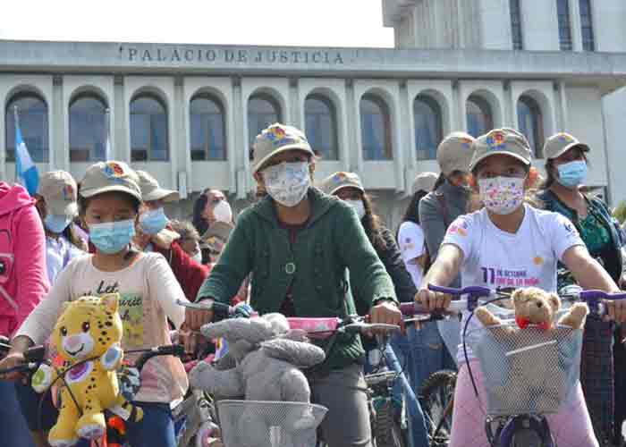 Un grupo llegó en bicicleta a esta manifestación que tuvo lugar en el centro histórico de Ciudad de Guatemala.