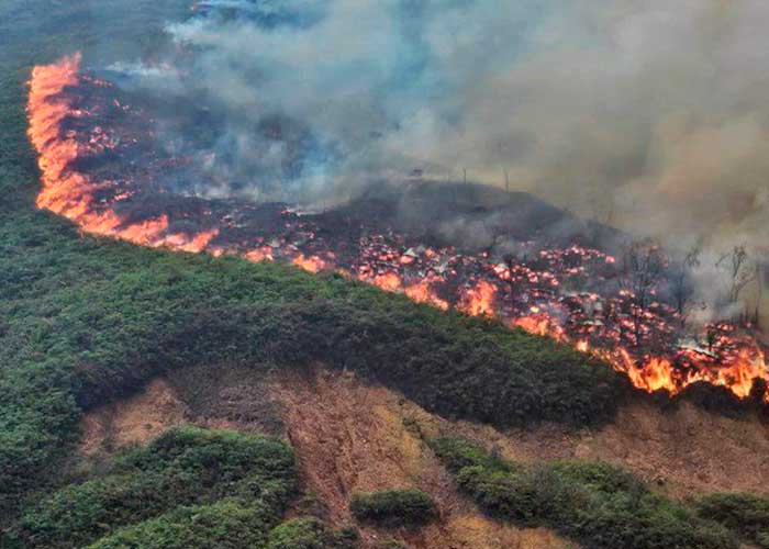 “Todos los equipos de la Fuerza Aérea se usan para apagar incendios en decenas de lugares del país, pero la predicción del Instituto de Hidrología, Meteorología y Estudios Ambientales dice que la crisis por calentamiento se extenderá a todo febrero y parte de marzo”; escribió el gobernante en su cuenta de X.