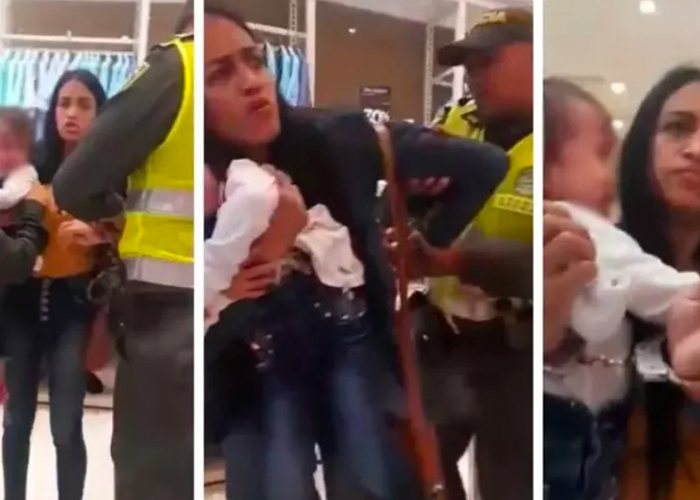 La mujer identificada como Wendy Norelys Álvarez, y madre de dos hijos fue arrestada por la policía mientras reclamaba el pago de su liquidación en una sucursal de Jon Sonen en Cartaganena. En el momento pedía que la grabaran para que la gente viera como la sacaban de la tienda; donde le debían 2 millones de pesos colombianos.