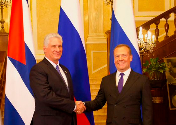 Medvédev agradeció al presidente cubano por su visita a Rusia. Al tiempo que calificó de intensa esta visita de Díaz-Canel, en que la sostendrá, recordó, conversaciones con el presidente Vladimir Putin.