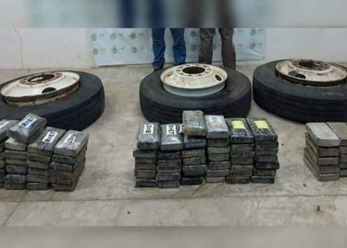 Un total de 100 kilogramos de cocaína que se encontraban ocultos en las llantas de un camión fueron decomisados.