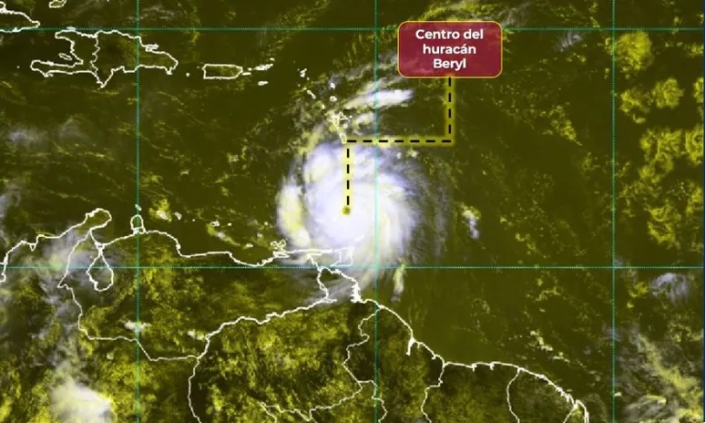 La velocidad del viento del Huracán Beryl baja levemente a 233 km/h, pero aún es un Huracán de categoría 4 y mantiene su desplazamiento hacia el oeste-noroeste, según la actualización de las 12 am, del Centro Nacional de Huracanes.