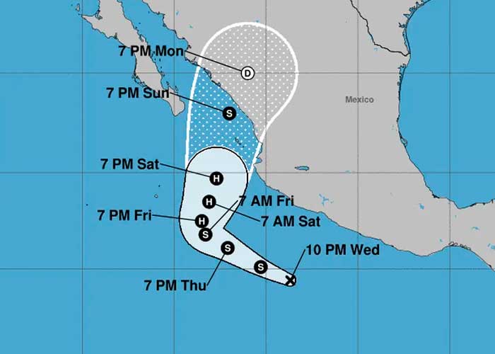 También señaló que “Grandes marejadas generadas por Orlene afectarán la costa de suroeste de México y el extremo sur de la península de Baja California para este fin de semana”.