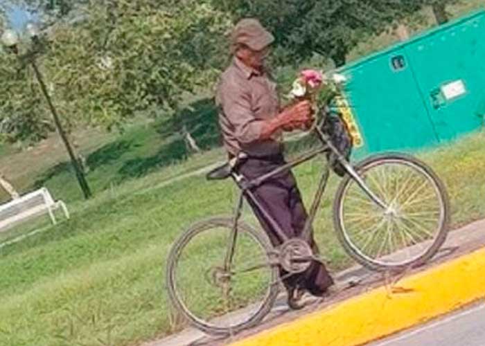 La foto del abuelito Aniceto Baez llevando las flores en su bicicleta se hizo viral en las redes sociales. Una usuaria se conmovió al ver la imagen y la compartió.