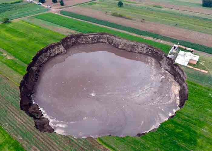 El socavón se originó con solo cinco metros de diámetro; en solo 24 horas pasó a los 30 metros y ha seguido creciendo hasta superar los 120 metros.
