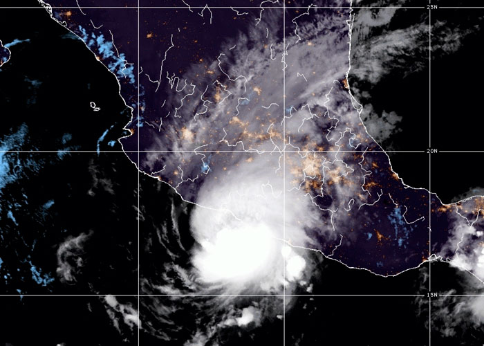 Según detalló el Servicio Meteorológico Nacional (SMN), a las 7.00 hora local (12.00 GMT), el ciclón ha avanzado ya varios kilómetros tierra adentro y se ubica a 25 kilómetros al nor-noreste de Lázaro Cárdenas (Michoacán) y a 75 kilómetros al noroeste de Zihuatanejo (Guerrero).