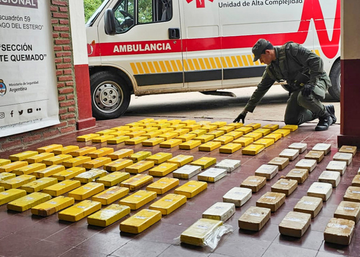 La ambulancia era una fachada para traficar 134 kg de cocaína en un doble fondo y en bolsos. GNA detectó la maniobra y la frenó en Santiago del Estero.