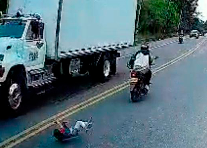 Milagrosamente, el descuido de unos padres no terminó en tragedia; ya que una menor, de apenas cuatro, se salvó de ser embestida por un camión y dos motos en una transitada carretera en Colombia.