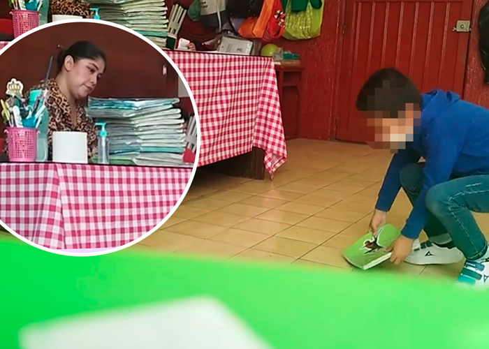 Una supuesta maestra fue exhibida mientras tiraba los cuadernos de sus alumnos al piso.