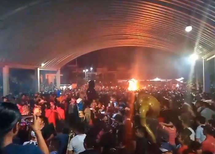 De manera que, en videos que circulan en redes sociales se puede ver el momento en que la estructura, cargada con más pirotecnia de lo habitual; estalla ante un auditorio que se encontraba disfrutando del ritual.