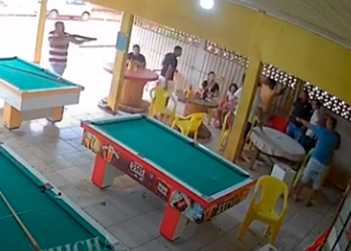 A través de un video que circula en las redes sociales se puede apreciar el preciso momento cuando dos hombres ejecutan a tiros a siete personas tras perder un juego de billar en Mato Grosso, Brasil.