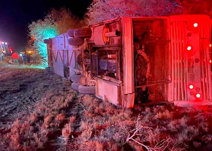 Durante primeros minutos de este jueves 12 de enero se registró una volcadura de autobús en el kilómetro 20 de la carretera Matehuala-Saltillo norte; a la altura de la comunidad de Los Pocitos, México.