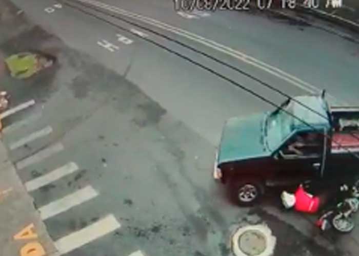 Vive de milagro un motociclista luego de ser atropellado y arrastrado por un camión en la entrada de una gasolinera en Aserrí, Costa Rica.