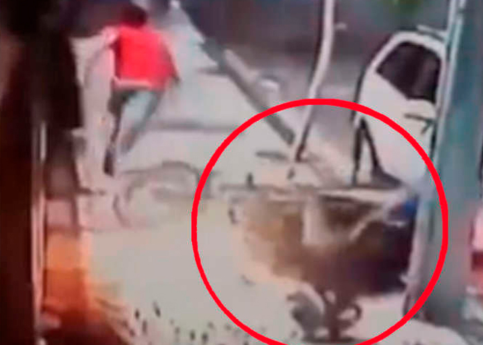 Por lo tanto, las imágenes de la grabación muestran que, el hombre iba caminando por la vía pública, cuando de repente, se percató que dos sujetos, que circulaban por la vereda en una motocicleta, se acercaban a toda velocidad, al parecer, para robarle sus pertenencias de valor.