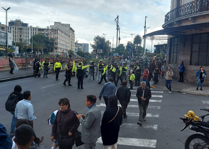 Mientras los participantes de la manifestación se concentran, la policía ecuatoriana instaló un contingente en el Parque El Arbolito, en Quito (capital). De acuerdo con el comandante policial del Distrito Metropolitano, Henry Tapia; «al momento tenemos desplegados más de 1.400 servidores policiales en los diferentes puntos para evitar el paso al casco colonial».