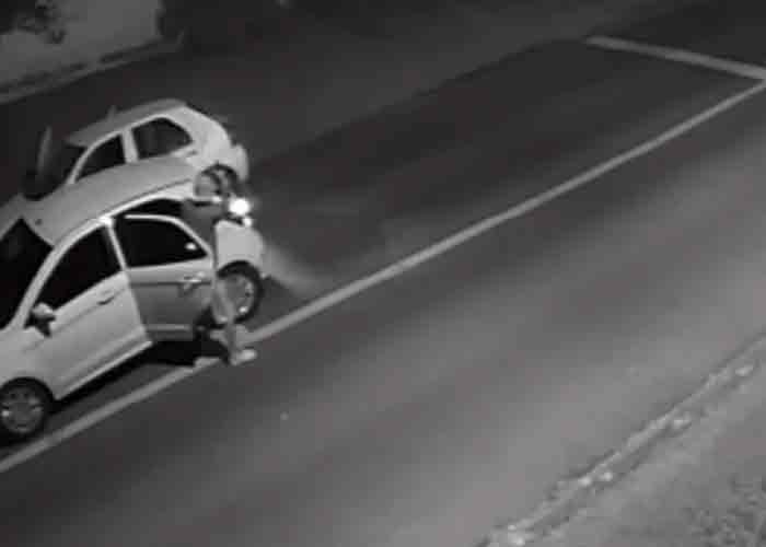 El teniente PM Giuliano Tozetti destacó que poco tiempo después del crimen, un auto del mismo modelo que aparece en las imágenes, siendo utilizado por los sospechosos, encontrado en llamas, en la colonia Campo Comprido.