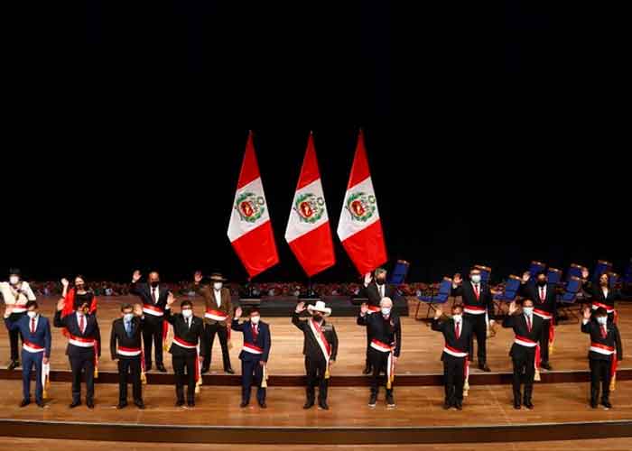 El nuevo presidente de Perú, Pedro Castillo juramentó en la noche del jueves en la capital del país a los ministros que formarán parte de su cartera ministerial.
