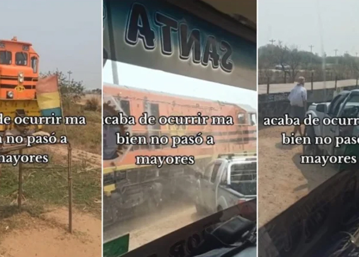 Un video que circula en redes sociales muestra el impactante momento en que una camioneta estuvo a punto de ser arrollada por un tren en la ciudad de Santa Cruz, Bolivia.