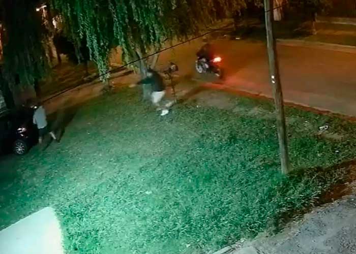 Sin embargo, los planes de los ladrones se vieron frustrados por la inesperada, pero valiente intervención, de tomar piedras del piso y comenzó a arrojárselas a uno de los ladrones. En ese momento, al ver la defensa de la víctima, el atracador le disparó. En el video se observa incluso el fogonazo del arma, pero el tiro no lo impactó.