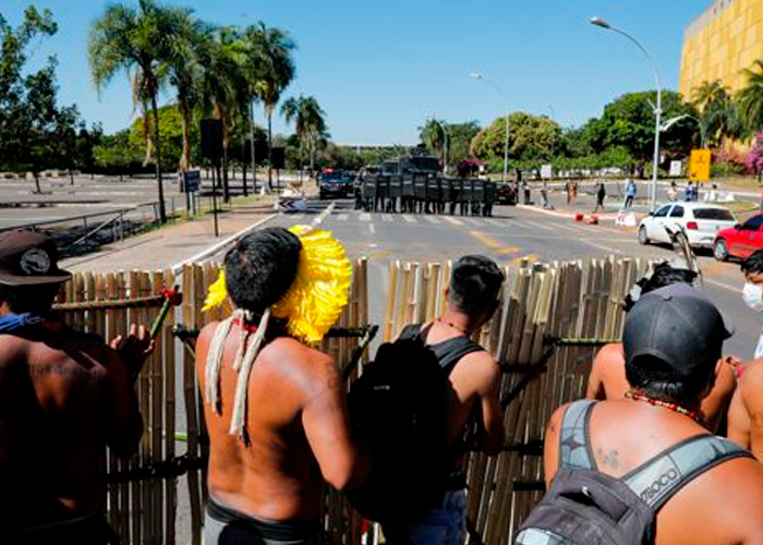 Manifestación indígena en Brasil del movimiento «Levante pela Terra» fueron reprimidos por la policía este martes cuando se acercaron a la sede del Congreso en Brasilia, la capital del gigante suramericano. Esto para protestar contra un proyecto de ley que pretende cambiar las reglas de delimitación de tierras.