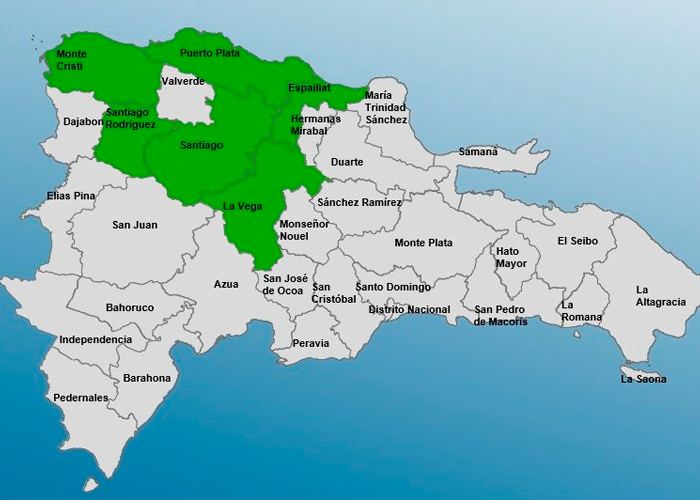 Por lo tanto, las provincias que se encuentran bajo alerta verde son; Santiago Duarte, Monseñor Nouel, María Trinidad, Sánchez, La Vega y Sánchez Ramírez de República Dominicana.