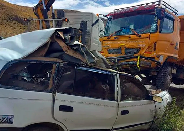 Aparatoso accidente de tránsito acaba con la vida de una familia, luego que un vehículo chocará de frente con un camión en una ruta interprovincial en Oruro, Bolivia.