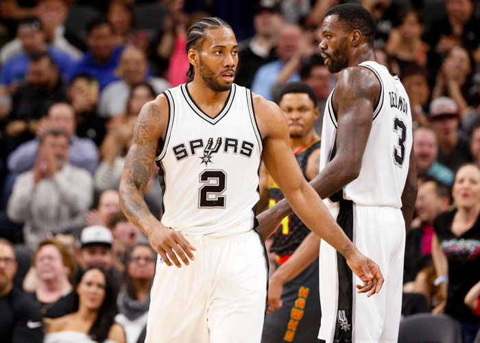 Kawhi Leonard anotó 31 puntos, en su regreso tras sufrir una conmoción cerebral, y los Spurs de San Antonio vencieron el lunes 107-99 a los Hawks de Atlanta para alcanzar a Golden State con la mejor foja en la NBA.