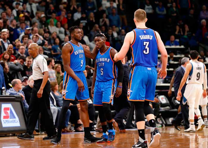 Tampoco Taj Gibson ni Andre Robertson jugaron, en momentos en que Oklahoma City se prepara para una serie de la primera ronda de los playoffs ante Houston. Domantas Sabonis agregó 19 tantos y nueve rebotes.